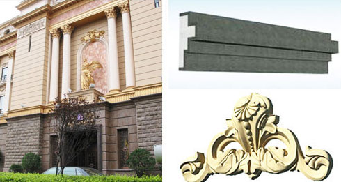 公司生产的高强度机制GRC制品体积轻、表面光滑无瑕疵,比一般人工制的GRC强度高10余倍,被广泛应用到西安乃至西北地区高端别墅、会所上,使之成为建筑的精华。